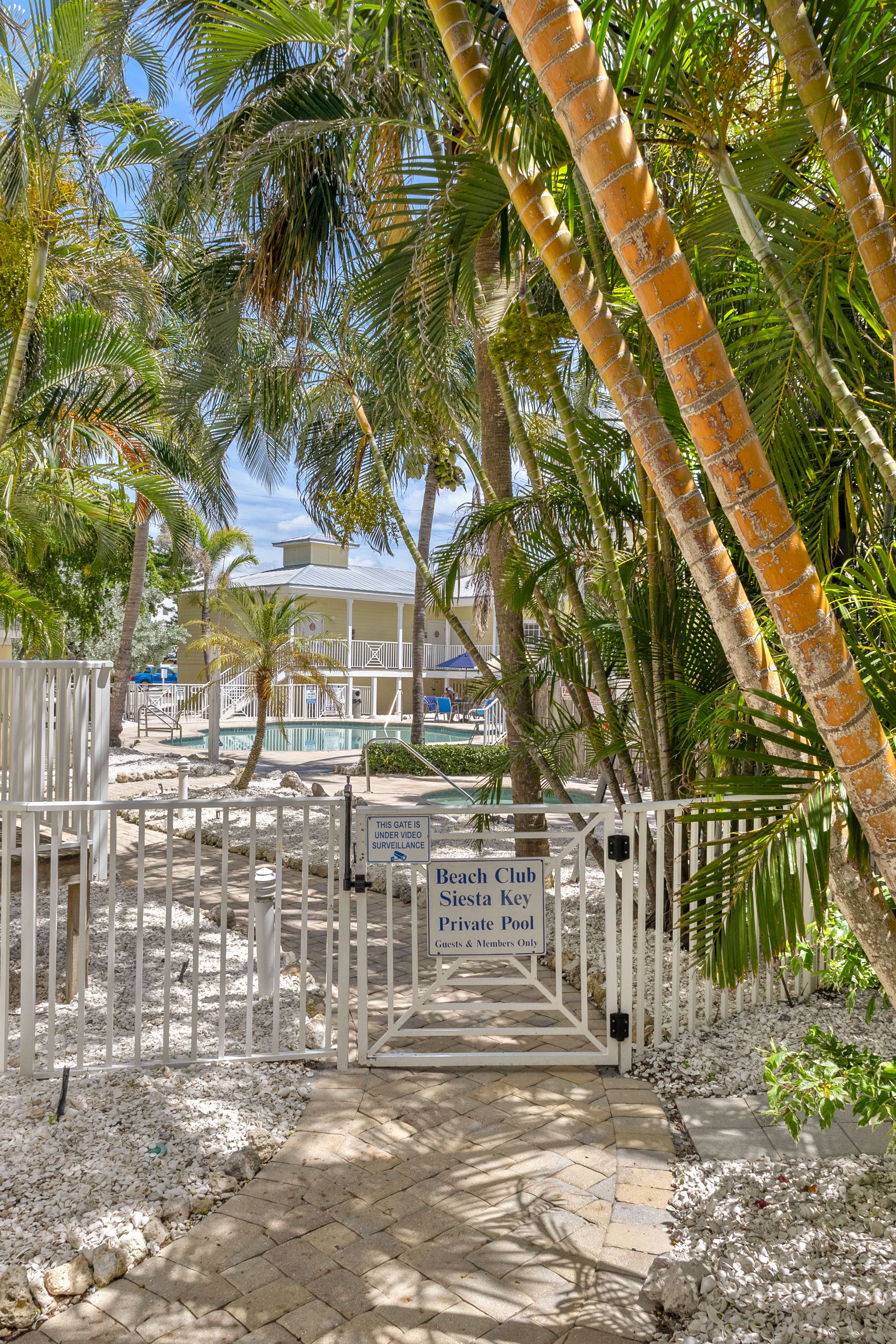 Beach Access: Our resort is perfectly positioned with easy access to Siesta Key’s world-renowned sands—just across the street via a secure community gate (code provided at check-in). We also provide complimentary beach chairs and umbrellas for guest use on a first-come, first-served basis. The Siesta Key public beach is just two miles away, offering additional amenities such as a snack bar, tennis courts, playground, picnic areas, and the famous weekly sunset drum circle.