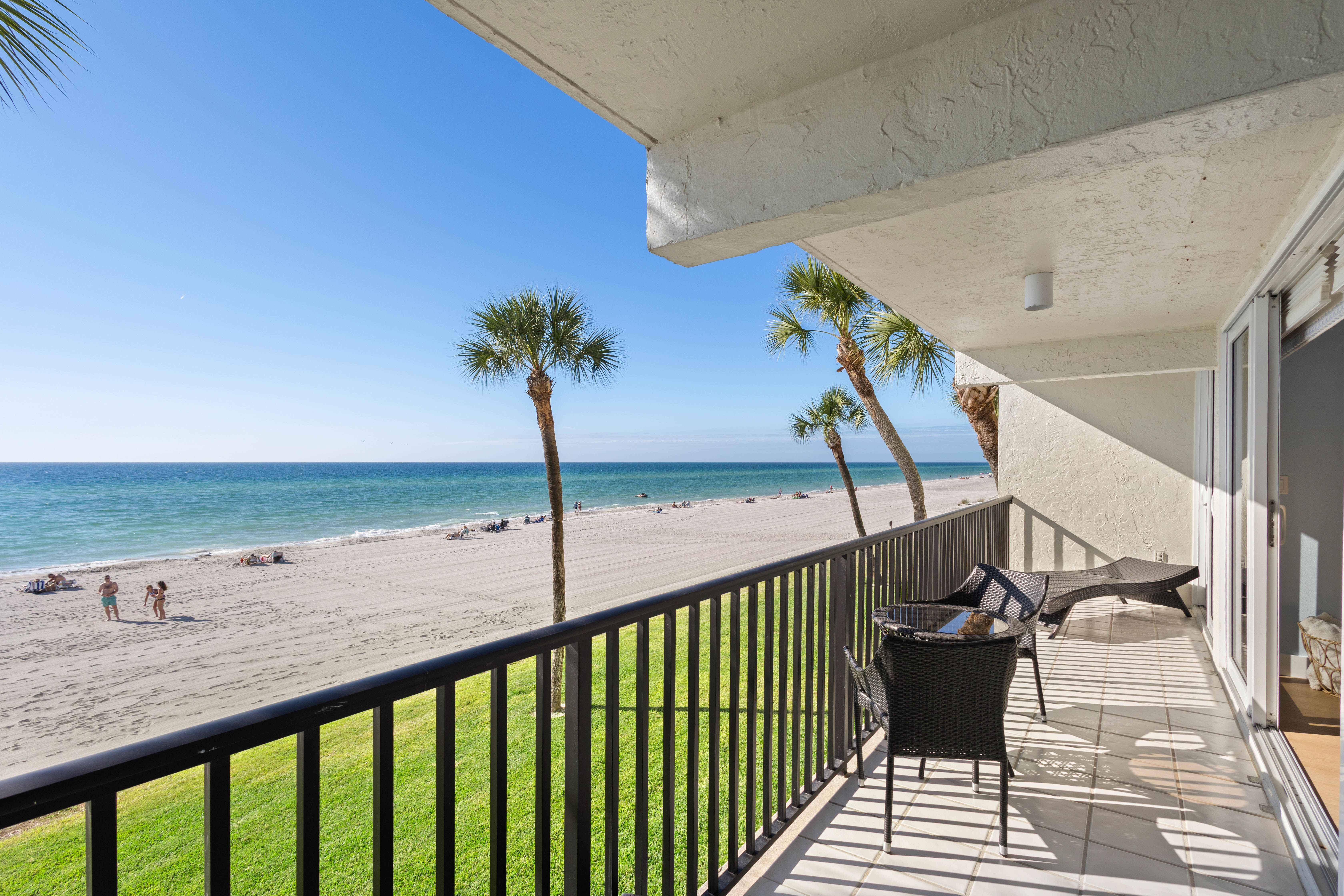 Escape to the sun-drenched shores of Longboat Key and make Unit #204 at Portobello your next vacation retreat. This charming two-bedroom, two-bathroom condominium blends classic beach style with modern comfort, featuring updated furnishings in a relaxed shabby-chic, cottage-inspired palette of soft, soothing colors. Wake up to the gentle sound of the waves and step out through sliding doors in both bedrooms and the living room onto your private patio overlooking the sparkling Gulf of Mexico – the perfect spot for morning coffee or sunset cocktails.